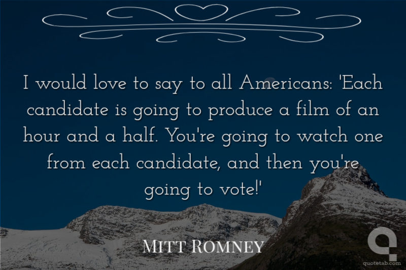 I would love to say to all Americans: 'Each candidate is going to produce a film of an hour and a half. You're going to watch one from each candidate, and then you're going to vote!'