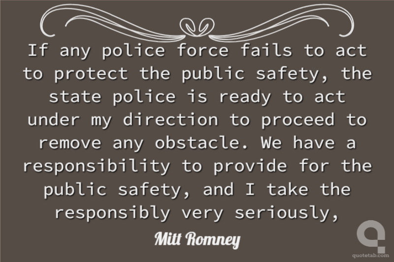 If any police force fails to act to protect the public safety, the state police is ready to act under my direction to proceed to remove any obstacle. We have a responsibility to provide for the public safety, and I take the responsibly very seriously,