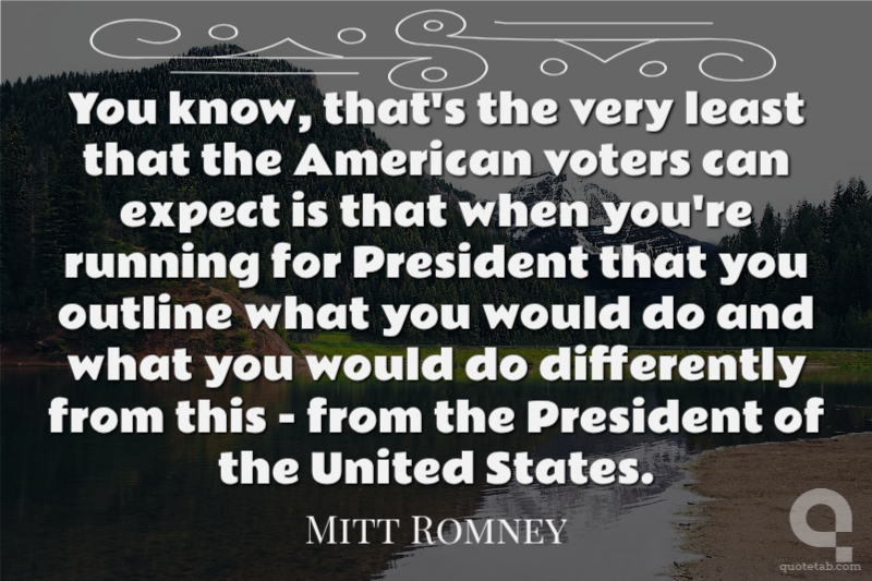 You know, that's the very least that the American voters can expect is that when you're running for President that you outline what you would do and what you would do differently from this - from the President of the United States.