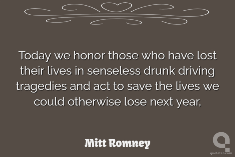 act driving drunk honor lives lose lost next otherwise save senseless today tragedies