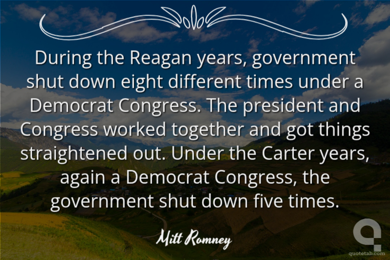 During the Reagan years, government shut down eight different times under a Democrat Congress. The president and Congress worked together and got things straightened out. Under the Carter years, again a Democrat Congress, the government shut down five times.