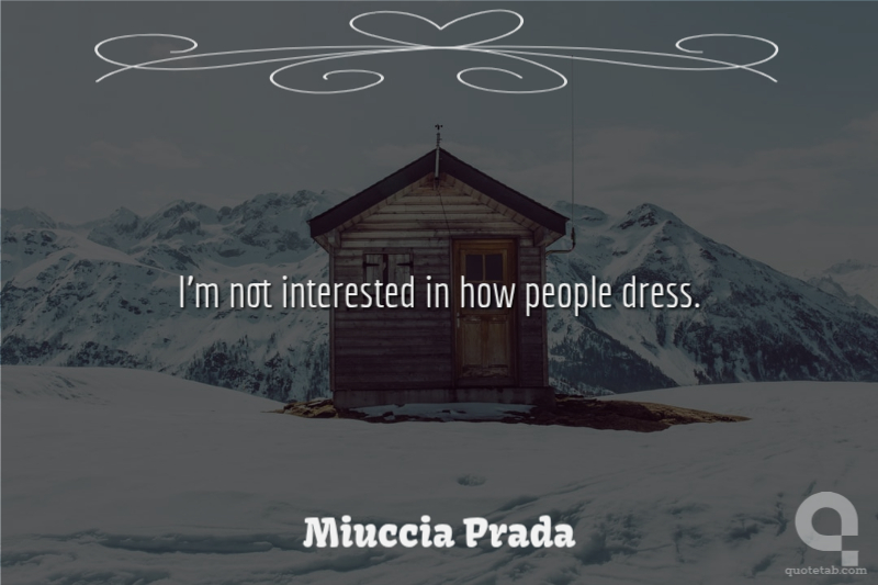 I'm not interested in how people dress. Of course, I recognize if somebody's elegant. But fashion doesn't interest me.