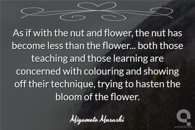 As if with the nut and flower, the nut has become less than the flower... both those teaching and those learning are concerned with colouring and showing off their technique, trying to hasten the bloom of the flower.