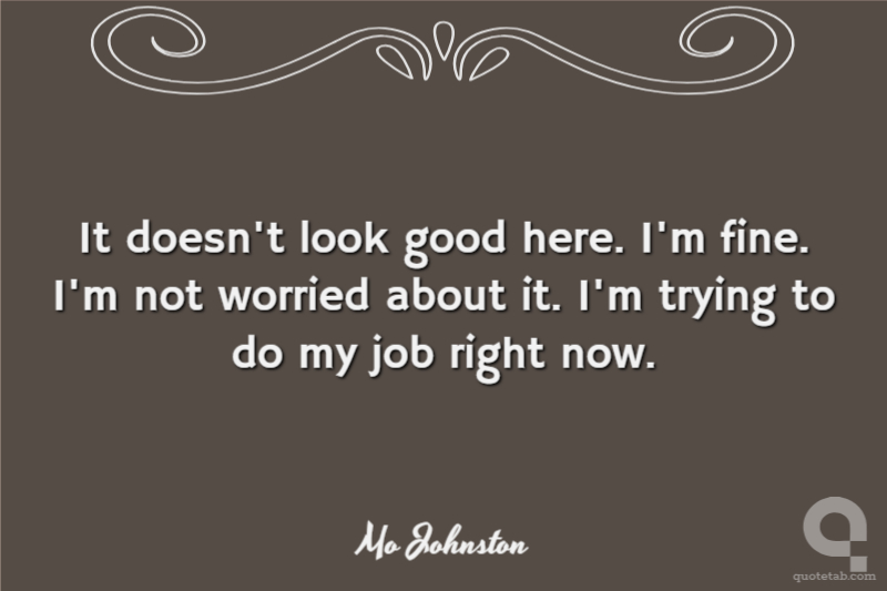 It doesn't look good here. I'm fine. I'm not worried about it. I'm trying to do my job right now.