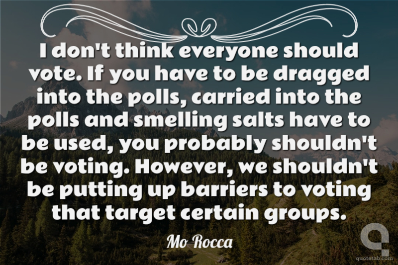 I don't think everyone should vote. If you have to be dragged into the polls, carried into the polls and smelling salts have to be used, you probably shouldn't be voting. However, we shouldn't be putting up barriers to voting that target certain groups.