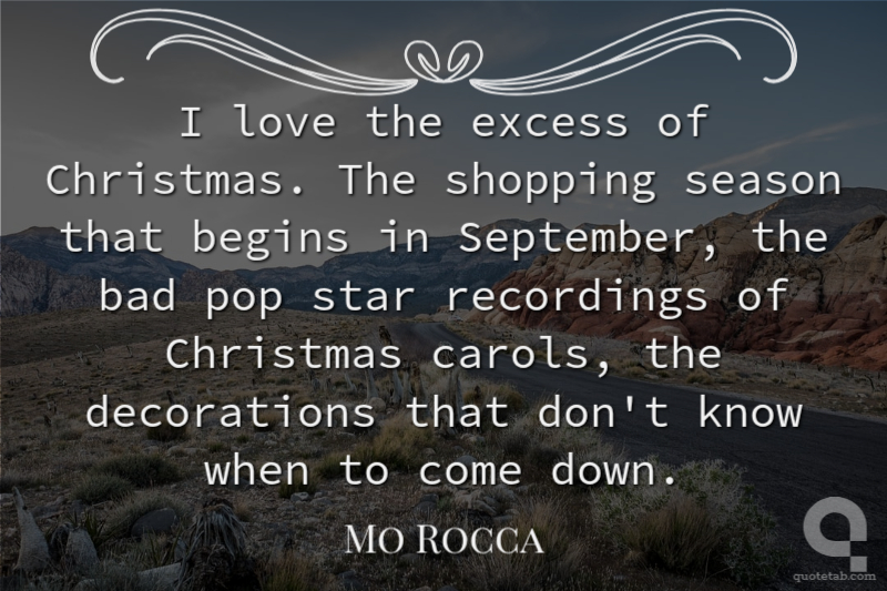 I love the excess of Christmas. The shopping season that begins in September, the bad pop star recordings of Christmas carols, the decorations that don't know when to come down.