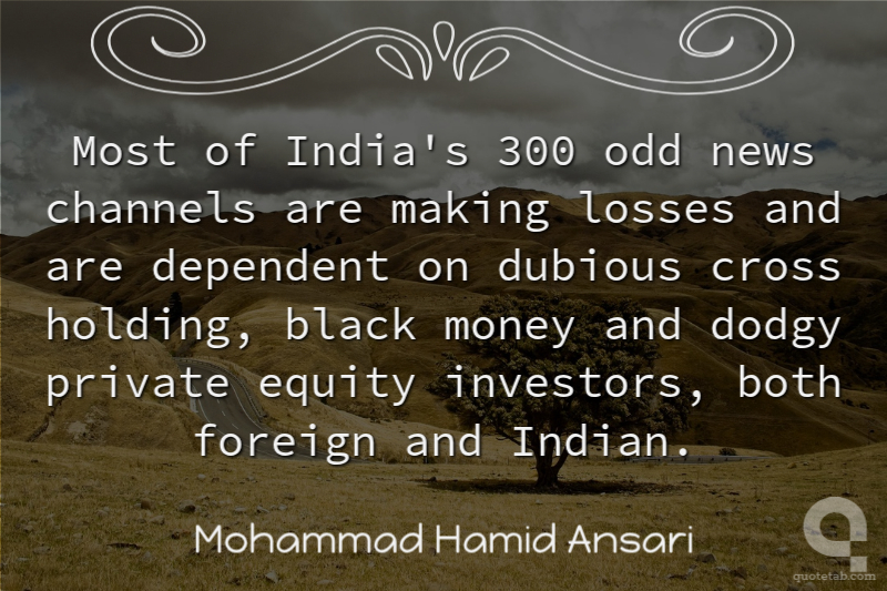 Most of India's 300 odd news channels are making losses and are dependent on dubious cross holding, black money and dodgy private equity investors, both foreign and Indian.