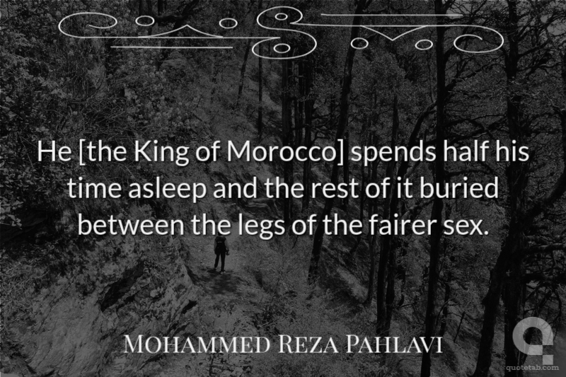 He [the King of Morocco] spends half his time asleep and the rest of it buried between the legs of the fairer sex.