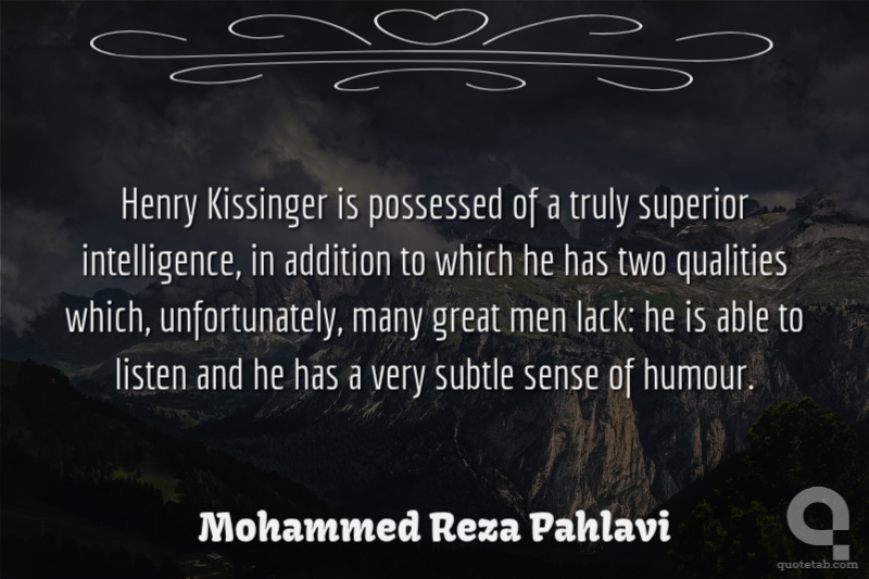 Henry Kissinger is possessed of a truly superior intelligence, in addition to which he has two qualities which, unfortunately, many great men lack: he is able to listen and he has a very subtle sense of humour.