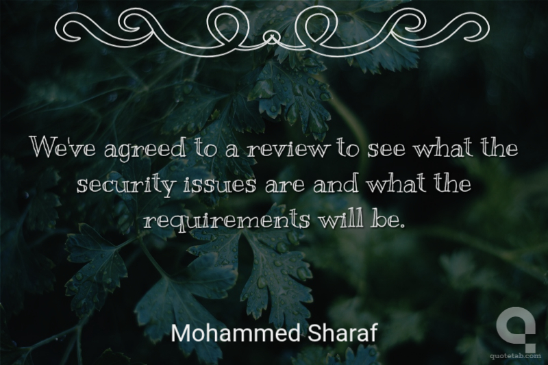 We've agreed to a review to see what the security issues are and what the requirements will be.