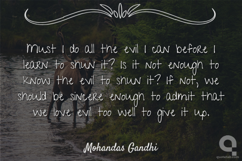 Must I do all the evil I can before I learn to shun it? Is it not enough to know the evil to shun it? If not, we should be sincere enough to admit that we love evil too well to give it up.