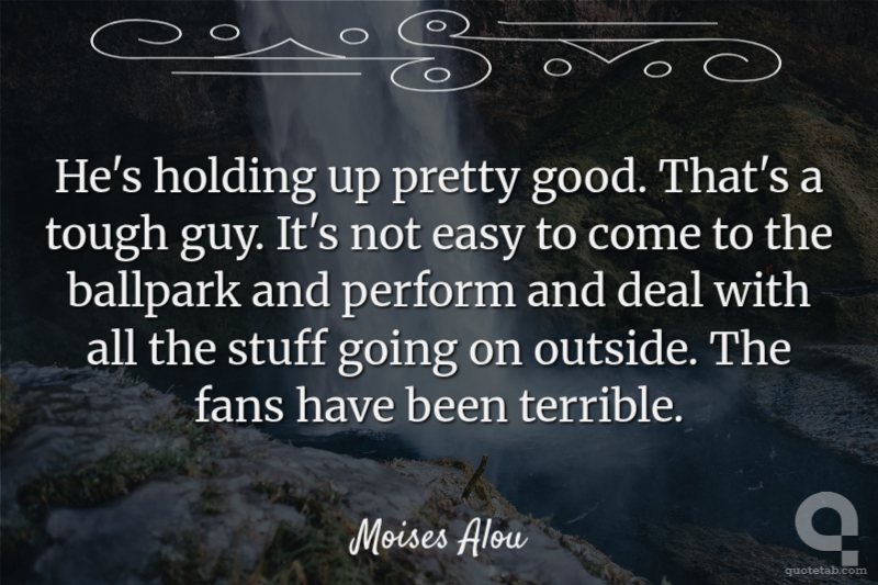 He's holding up pretty good. That's a tough guy. It's not easy to come to the ballpark and perform and deal with all the stuff going on outside. The fans have been terrible.