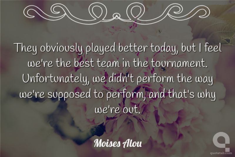 They obviously played better today, but I feel we're the best team in the tournament. Unfortunately, we didn't perform the way we're supposed to perform, and that's why we're out.