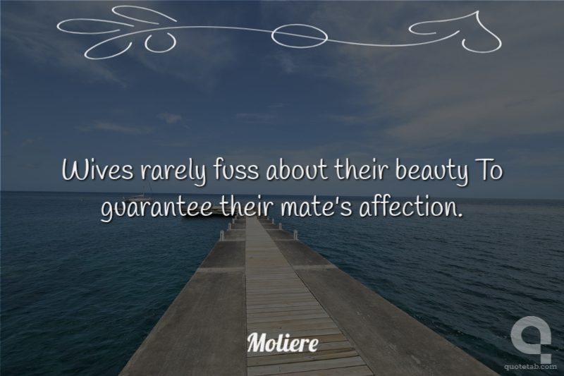 Wives rarely fuss about their beauty To guarantee their mate's affection.