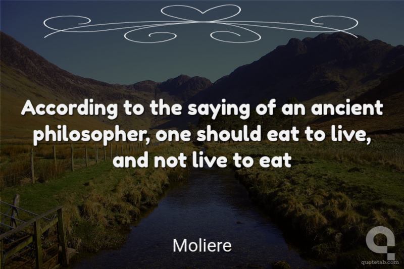 According to the saying of an ancient philosopher, one should eat to live, and not live to eat