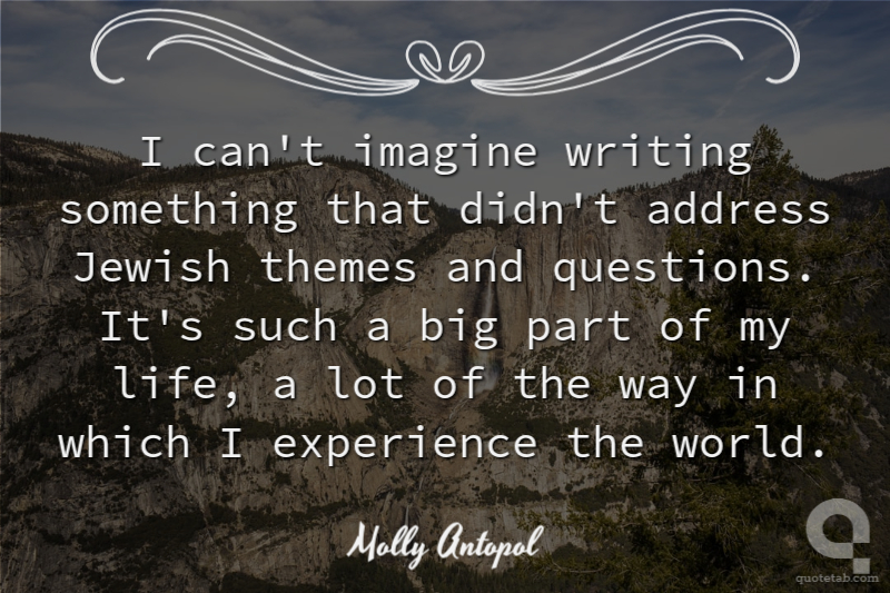 I can't imagine writing something that didn't address Jewish themes and questions. It's such a big part of my life, a lot of the way in which I experience the world.