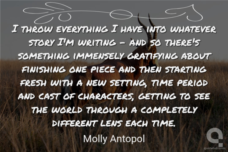 I throw everything I have into whatever story I'm writing - and so there's something immensely gratifying about finishing one piece and then starting fresh with a new setting, time period and cast of characters, getting to see the world through a completely different lens each time.
