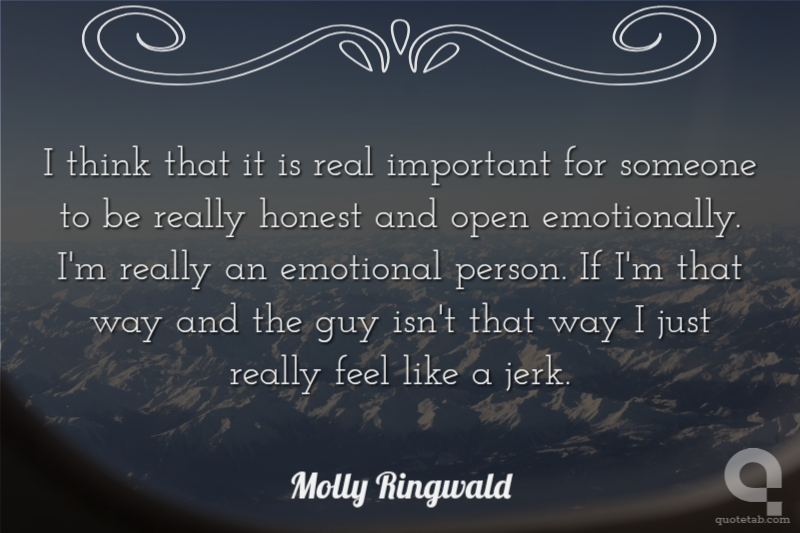 I think that it is real important for someone to be really honest and open emotionally. I'm really an emotional person. If I'm that way and the guy isn't that way I just really feel like a jerk.