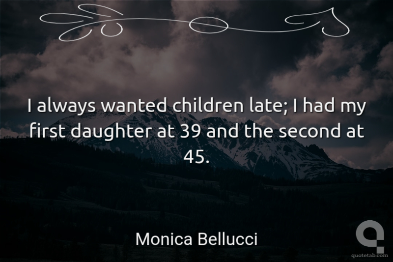 I always wanted children late; I had my first daughter at 39 and the second at 45.