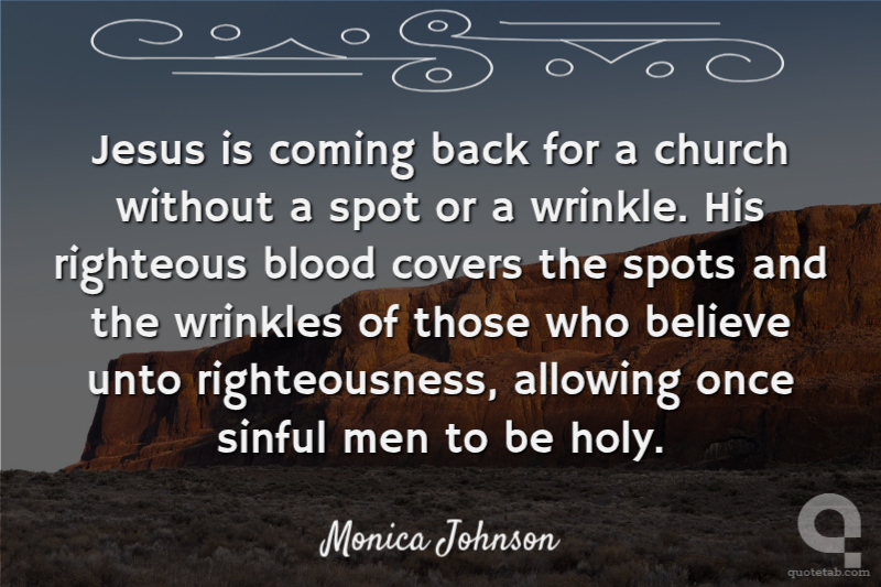 Jesus is coming back for a church without a spot or a wrinkle. His righteous blood covers the spots and the wrinkles of those who believe unto righteousness, allowing once sinful men to be holy.