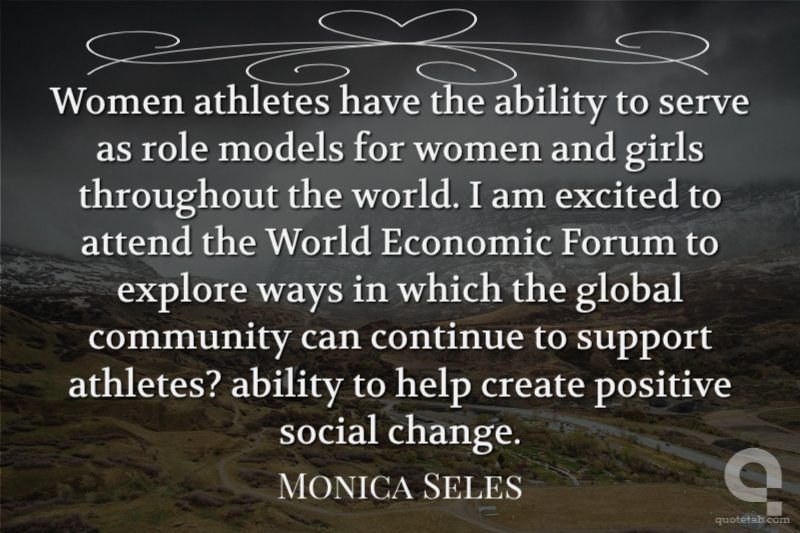 Women athletes have the ability to serve as role models for women and girls throughout the world. I am excited to attend the World Economic Forum to explore ways in which the global community can continue to support athletes? ability to help create positive social change.