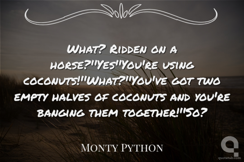 What? Ridden on a horse?''Yes''You're using coconuts!''What?''You've got two empty halves of coconuts and you're banging them together!''So?
