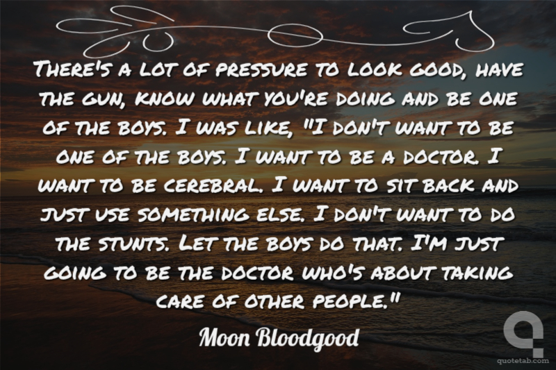 There's a lot of pressure to look good, have the gun, know what you're doing and be one of the boys. I was like, "I don't want to be one of the boys. I want to be a doctor. I want to be cerebral. I want to sit back and just use something else. I don't want to do the stunts. Let the boys do that. I'm just going to be the doctor who's about taking care of other people."