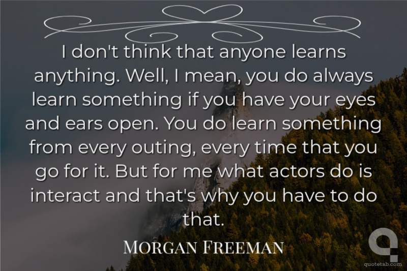I don't think that anyone learns anything. Well, I mean, you do always learn something if you have your eyes and ears open. You do learn something from every outing, every time that you go for it. But for me what actors do is interact and that's why you have to do that.