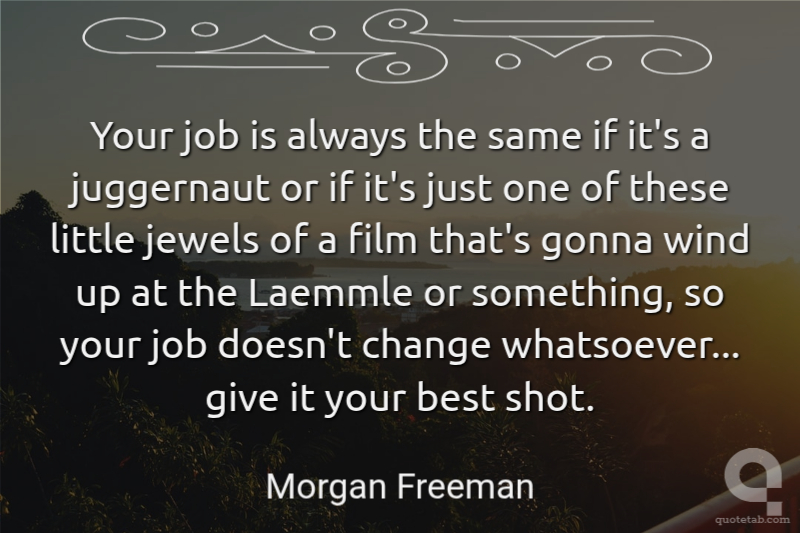 Your job is always the same if it's a juggernaut or if it's just one of these little jewels of a film that's gonna wind up at the Laemmle or something, so your job doesn't change whatsoever... give it your best shot.