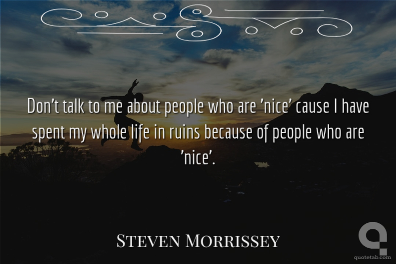 Don't talk to me about people who are 'nice' cause I have spent my whole life in ruins because of people who are 'nice'.