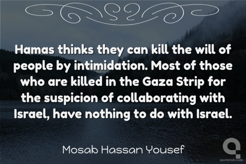 Hamas thinks they can kill the will of people by intimidation. Most of those who are killed in the Gaza Strip for the suspicion of collaborating with Israel, have nothing to do with Israel.