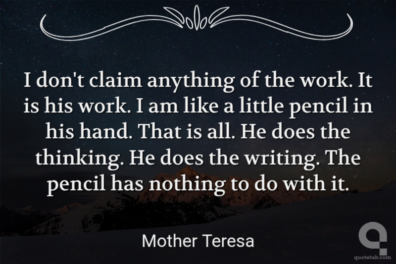 I am a little pencil in God's hands. He does the thinking. He does the writing. He does everything and sometimes it is really hard because it is a broken pencil and He has to sharpen it a little more.