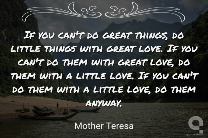 If you can't do great things, do little things with great love. If you can't do them with great love, do them with a little love. If you can't do them with a little love, do them anyway.