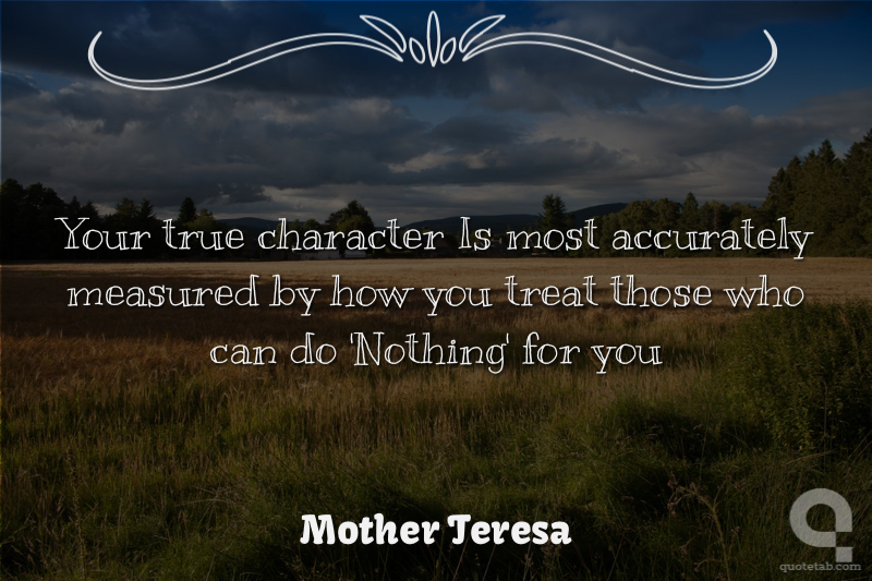 Your true character Is most accurately measured by how you treat those who can do 'Nothing' for you
