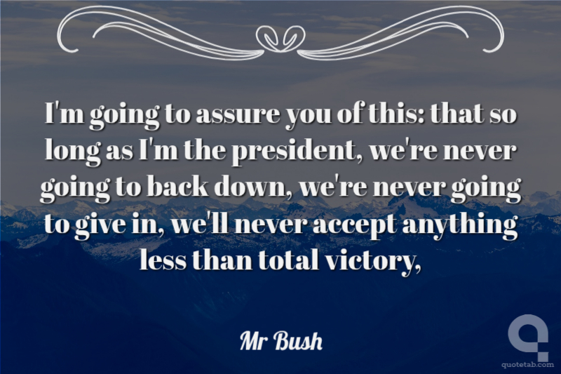 I'm going to assure you of this: that so long as I'm the president, we're never going to back down, we're never going to give in, we'll never accept anything less than total victory,