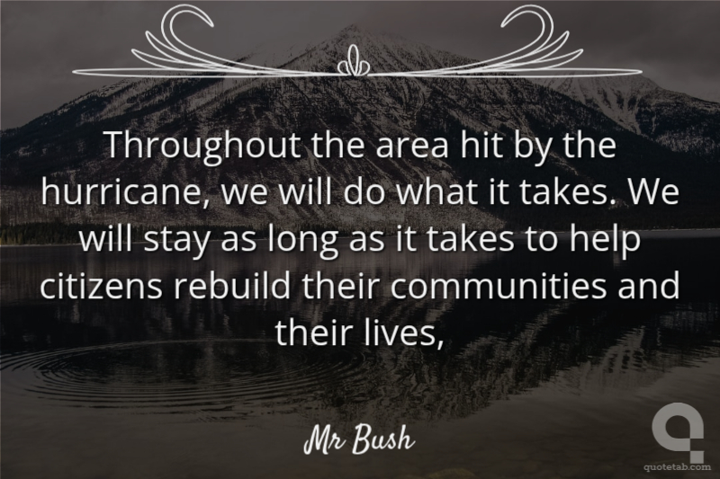 Throughout the area hit by the hurricane, we will do what it takes. We will stay as long as it takes to help citizens rebuild their communities and their lives,