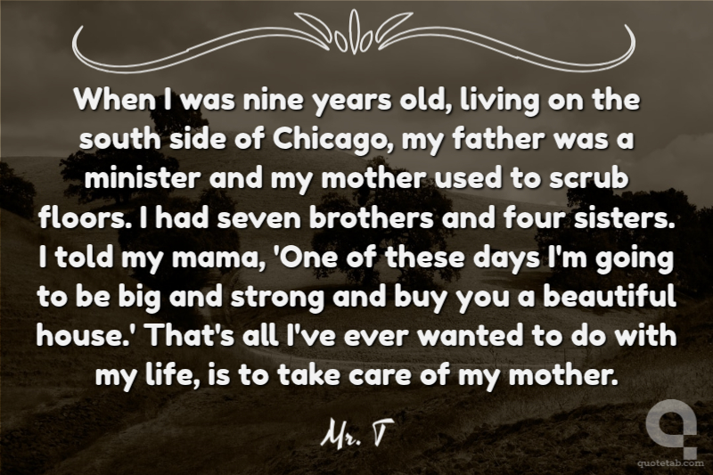 When I was nine years old, living on the south side of Chicago, my father was a minister and my mother used to scrub floors. I had seven brothers and four sisters. I told my mama, 'One of these days I'm going to be big and strong and buy you a beautiful house.' That's all I've ever wanted to do with my life, is to take care of my mother.
