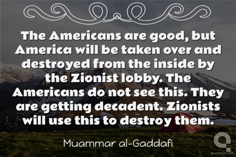 The Americans are good, but America will be taken over and destroyed from the inside by the Zionist lobby. The Americans do not see this. They are getting decadent. Zionists will use this to destroy them.