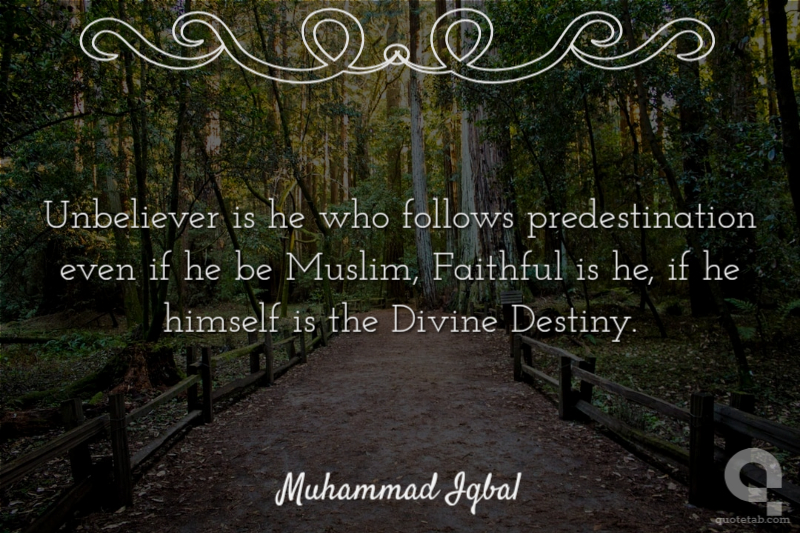 Unbeliever is he who follows predestination even if he be Muslim, Faithful is he, if he himself is the Divine Destiny.