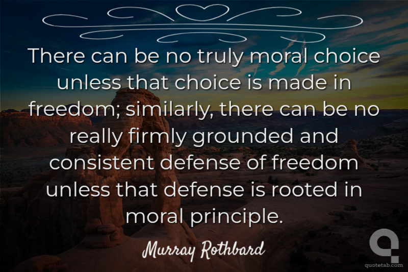 There can be no truly moral choice unless that choice is made in freedom; similarly, there can be no really firmly grounded and consistent defense of freedom unless that defense is rooted in moral principle.