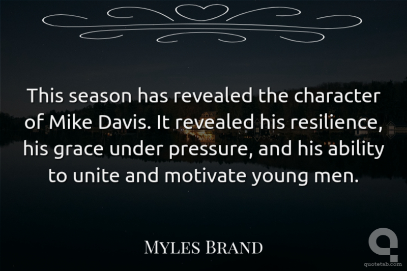 This season has revealed the character of Mike Davis. It revealed his resilience, his grace under pressure, and his ability to unite and motivate young men.