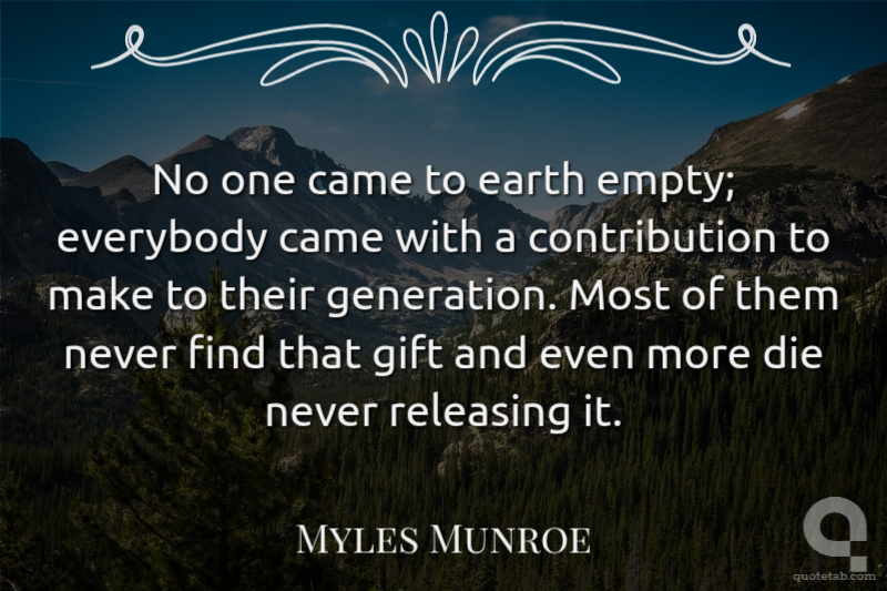 No one came to earth empty; everybody came with a contribution to make to their generation. Most of them never find that gift and even more die never releasing it.