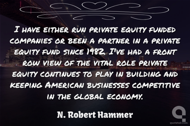 I have either run private equity funded companies or been a partner in a private equity fund since 1982. I've had a front row view of the vital role private equity continues to play in building and keeping American businesses competitive in the global economy.
