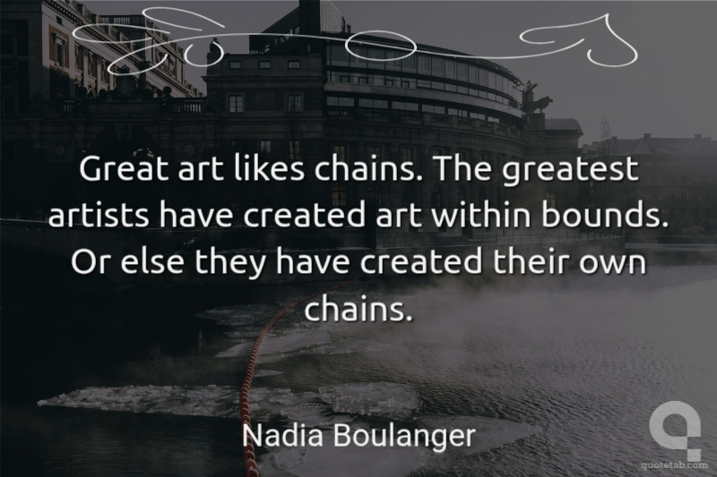 Great art likes chains. The greatest artists have created art within bounds. Or else they have created their own chains.