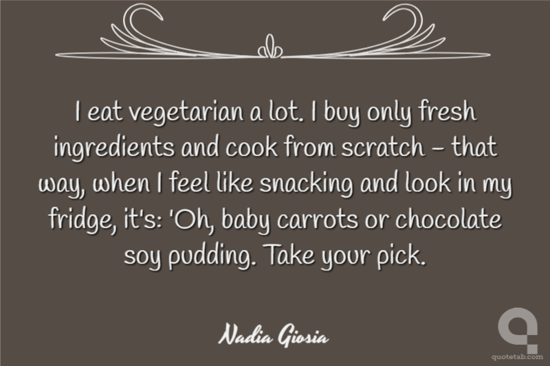 I eat vegetarian a lot. I buy only fresh ingredients and cook from scratch - that way, when I feel like snacking and look in my fridge, it's: 'Oh, baby carrots or chocolate soy pudding. Take your pick.