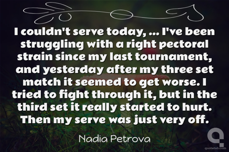 I couldn't serve today, ... I've been struggling with a right pectoral strain since my last tournament, and yesterday after my three set match it seemed to get worse. I tried to fight through it, but in the third set it really started to hurt. Then my serve was just very off.