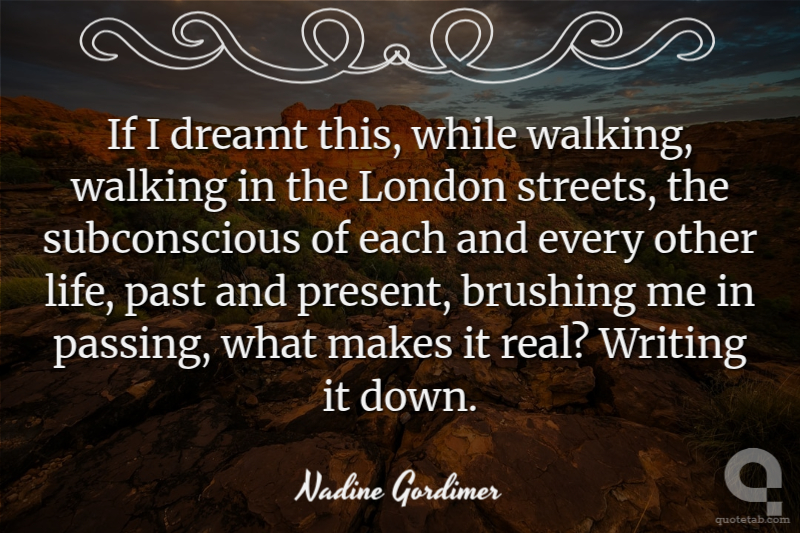 If I dreamt this, while walking, walking in the London streets, the subconscious of each and every other life, past and present, brushing me in passing, what makes it real? Writing it down.