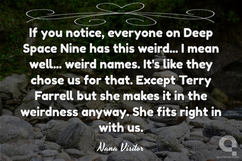 If you notice, everyone on Deep Space Nine has this weird... I mean well... weird names. It's like they chose us for that. Except Terry Farrell but she makes it in the weirdness anyway. She fits right in with us.