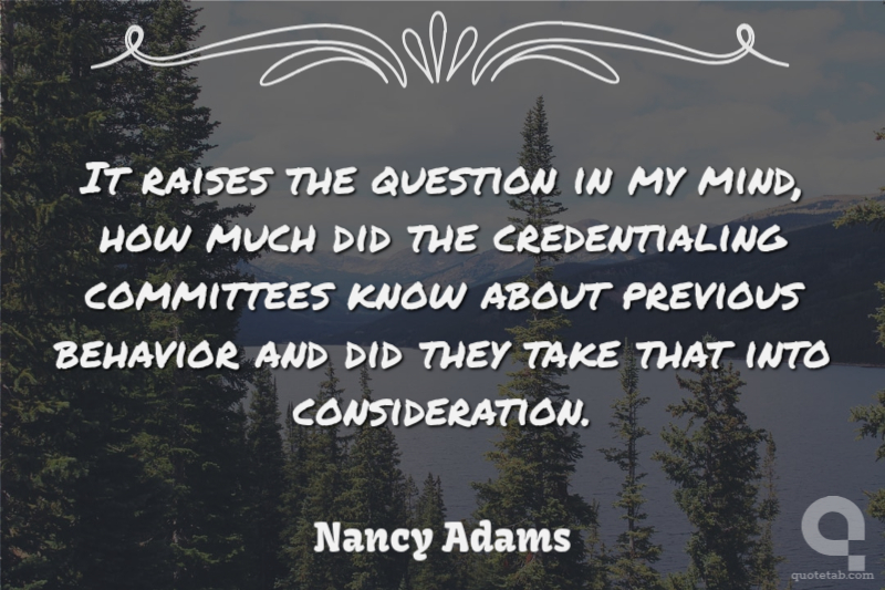 It raises the question in my mind, how much did the credentialing committees know about previous behavior and did they take that into consideration.