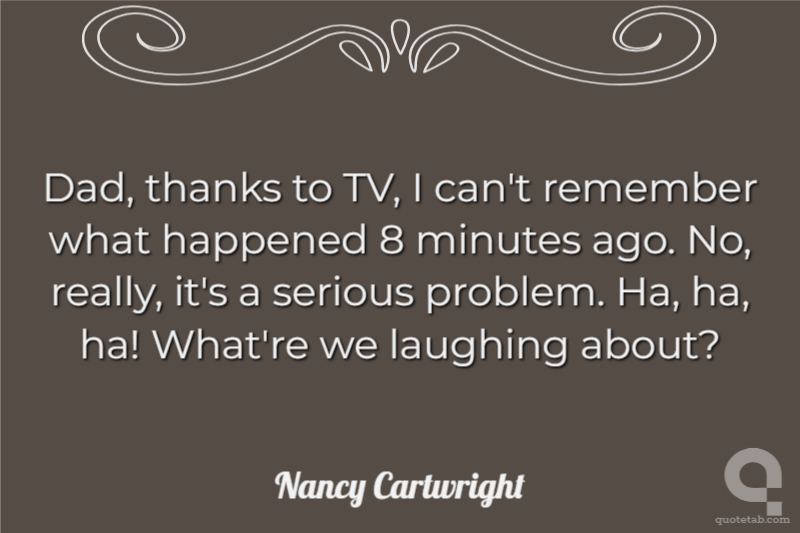 Dad, thanks to TV, I can't remember what happened 8 minutes ago. No, really, it's a serious problem. Ha, ha, ha! What're we laughing about?